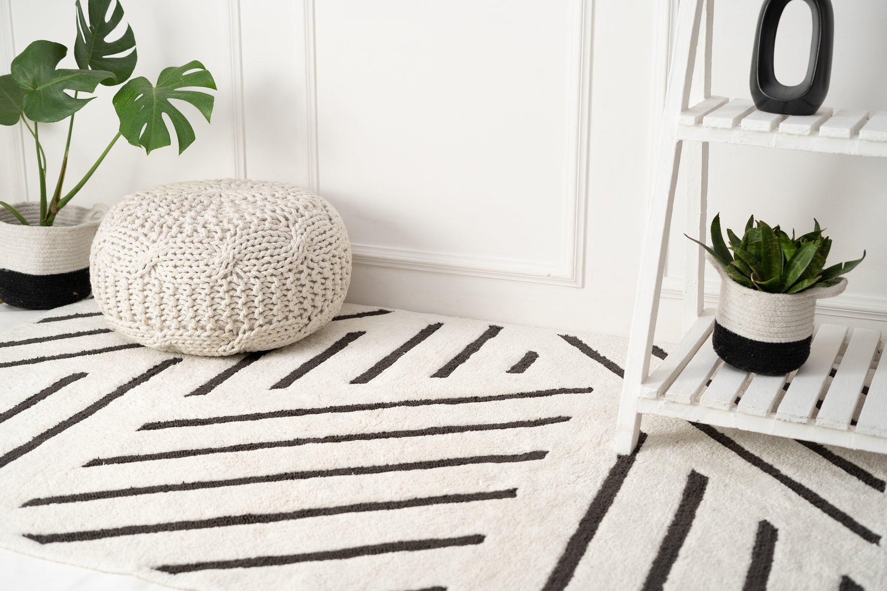 When luxurious comfort met elegant design! With its modern-contemporary style and unparalleled comfort, our gorgeous zebra crossing rug brings to you the best of both worlds. This minimal rug is designed to add a pleasing and enlivening element to any interior space. The monotone white rug with etched black geometric lines is perfect for both home and office spaces due to its versatility and timeless sophistication.