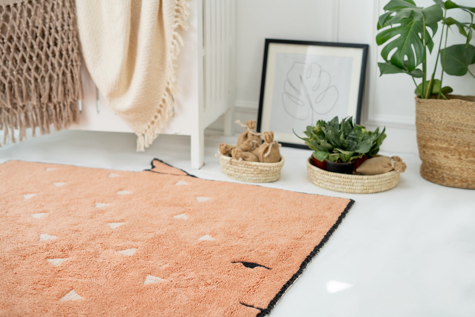 The rug is made from organic, soft cotton and is completely chemical-free, making it safe for your little one! Be carefree about spills and scribble as our rugs are easily washable at home.
