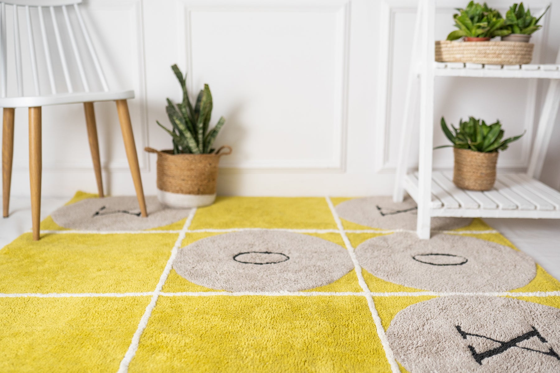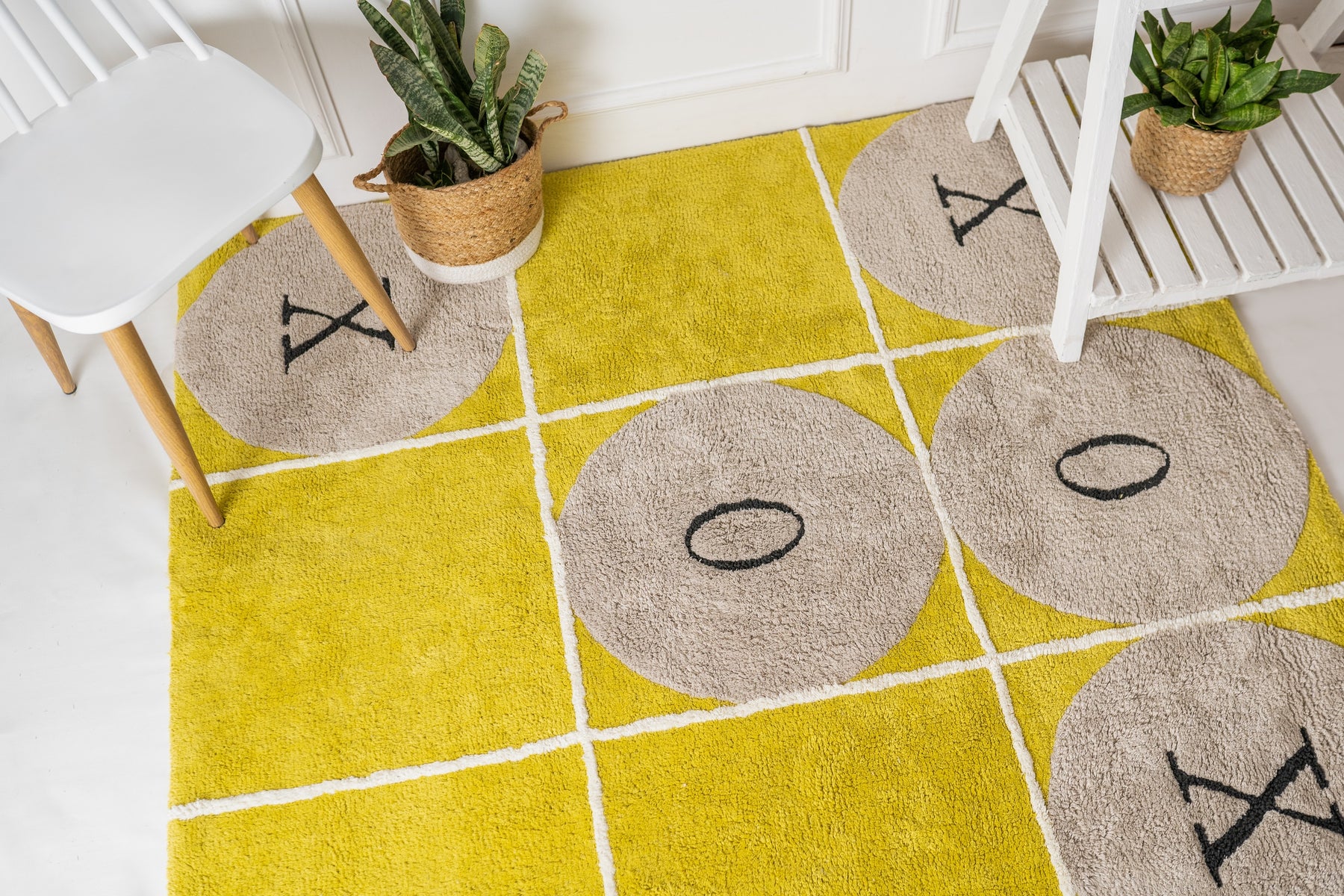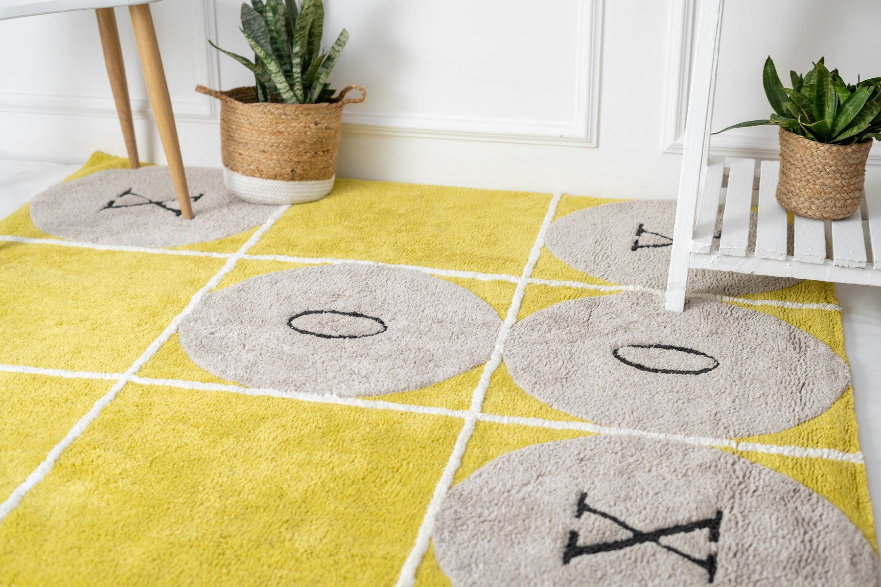The fun of games together with the comfort and warmth of our soft, plush rugs. Our Tic-Tac-Toe rug takes inspiration from the nostalgia of our favourite childhood game. Sprawl on this super cosy rug with your child and indulge in a friendly match of tic-tac-toe!